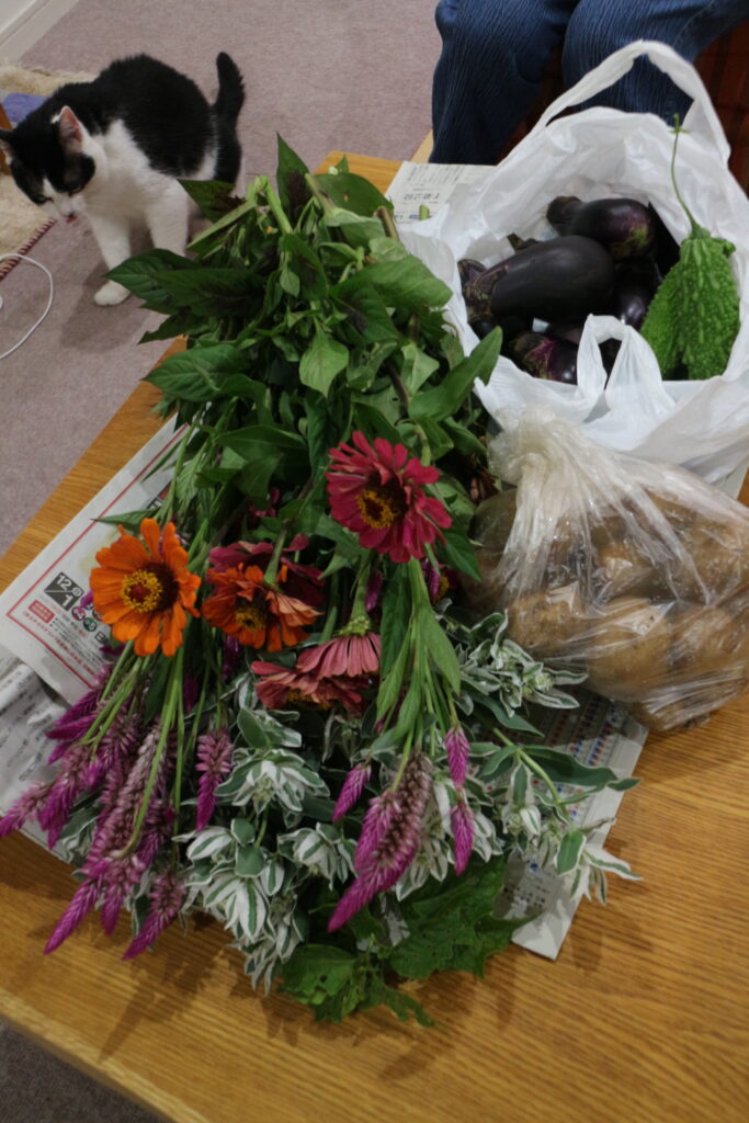 Uncategorized お盆の準備 200以上これを作らなきゃいけない 夕方 モンとお友達の畑に行ってお花を頂いてきました セナ モンが同じ事をしたい 「シャーッ!」セナに怒られる もう帰っているかいつも居ると思うが 今年のセラちゃんの乗り物 お友達に蓮の葉の代わり 里芋の葉でと教えてもらったので ホオズキを仏壇に横渡に着けたり いつもとはちょっと違うお盆