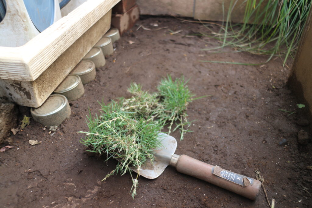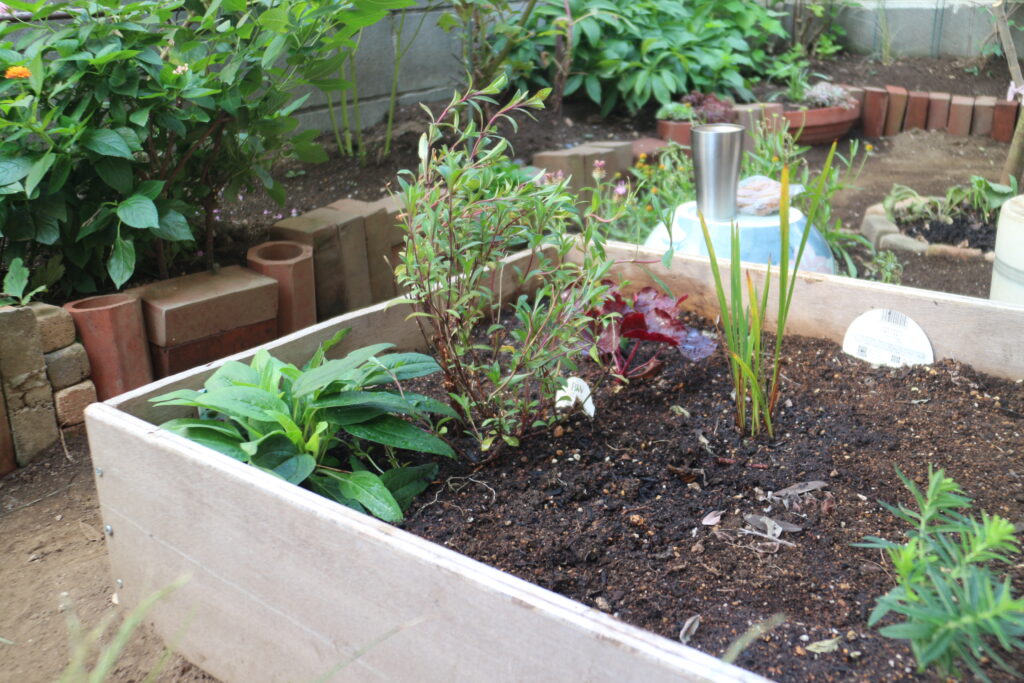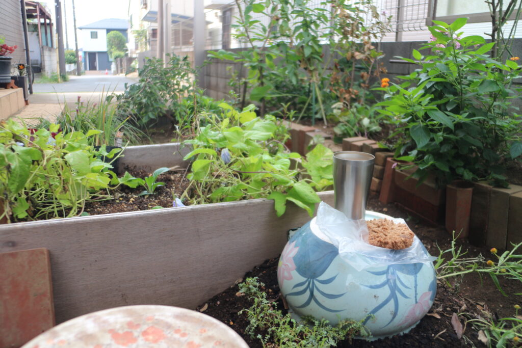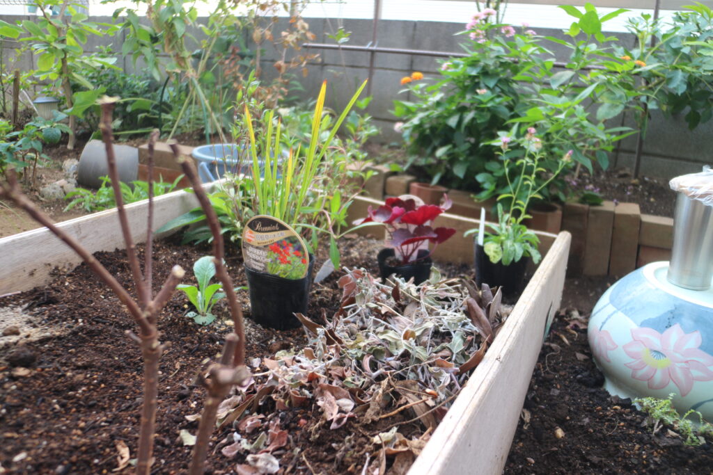 Uncategorized アメリカンクッキー 昨日 軽く寝るつもりが2時間寝てしまい バタバタで水まき 水をまくだけで終了 登録チャンネルで出てくるクッキーを真似て 明日のお茶に アメリカンクッキー&ミルクティー 起きてすぐには庭は出来ない ゴミ出したりリリ行ったり 隙間で育った松葉ボタン 私の庭色 庭に来て お茶して 庭作りを開始 水はけが悪くてぐちゃぐちゃするので 家の下を通り抜けたじじの芝を持ってくる じじの芝 横に伸ばしてるの 枯れ方が渋い 横に種を埋めておく レイズドベットに植え付け 今日はココ と ココ に植え付け