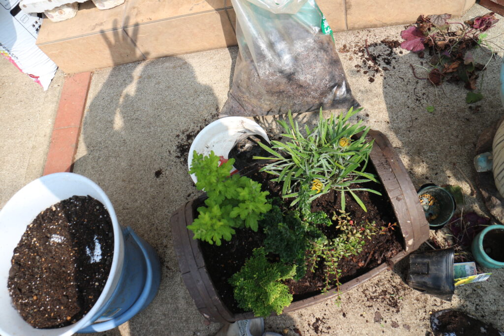 Uncategorized 寄せ植え 苗を植えなきゃ ダメにしてしまう 頑張っていた子達をチェンジして 菊とか盆栽の子達を合わせて 少し和風 これに去年のハロウィンスティックを立てて 設置して コウモリ 車が来た時に頂いた ガーベラ 育ってきました お豆腐屋さんで買った 大福 ばばは腕が痛くて 腫れてきて腕を上げられないけど 頑張っています 食べたかった 肉団子の甘酢かけ