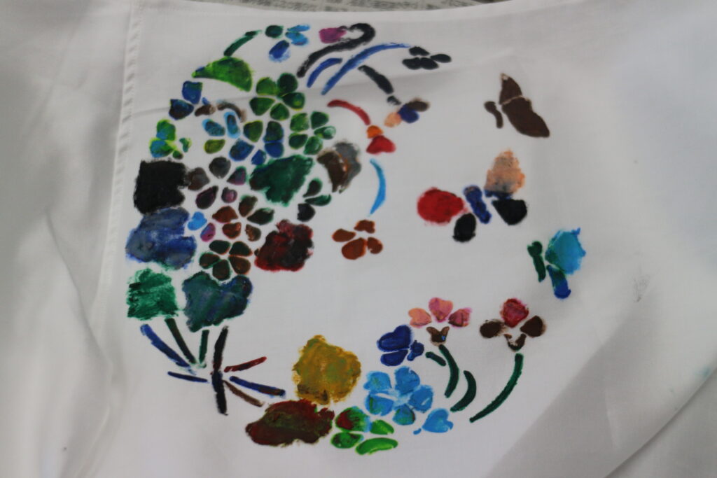 Uncategorized ステンシル 植え込みしたのが駄目になったり 変えてみたり 色々 鉢のウサギが育ってきてる ハートマークかVマークが浮き出てきた セナちゃん 裏の蝶の花壇に色つけしたくて ステンシルのシートを買った シャツでも布用のクレヨンで試したいのでシャツを作る アイロンをかける前 ボタンも色々付ける 母に着て貰い撮影 こんな感じで出来ました