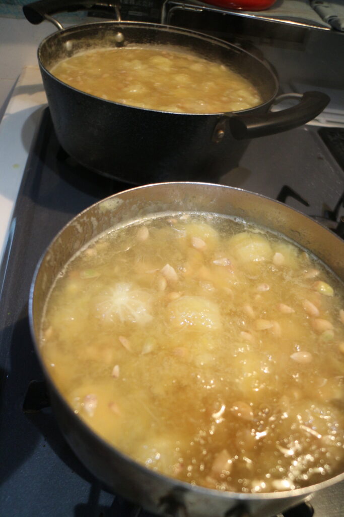 Uncategorized ゆずジャム作り 柚子を収穫して ジャム作りをする事になった 誰も来ていない 柚子の木が見当たらず 畑で迷子になる 菊の花も挿し芽したいので少し見て回る だいぶ手前にあった とげで収穫が大変なのがわかった してみないとわからない お友達に会えて 大根も一本追加 紫のサツマイモとイチジク サラダ菜の苗も追加 帰宅 開けたらりりィ君 砂糖とビンは昨日買っておいた 実と皮を分けただけで 子供の頃以来 指がふやけてシワシワになった 子供の頃は 確かお風呂に入るだけでシワシワになっていた様な 今は相当浸からないと シワシワにならない 貴重な体験だった よかった^^ 最後にコキアもホウキにした 明日 皮と合わせて炊く